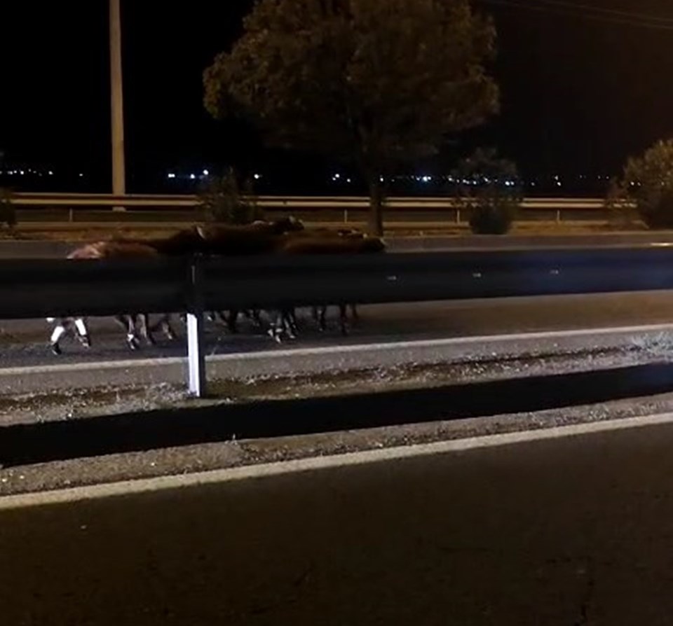 Seyir halindeki TIR’dan çalınan koyunlar, motosikletli hırsızlar kaza yapınca yolun ortasına terk edildi.